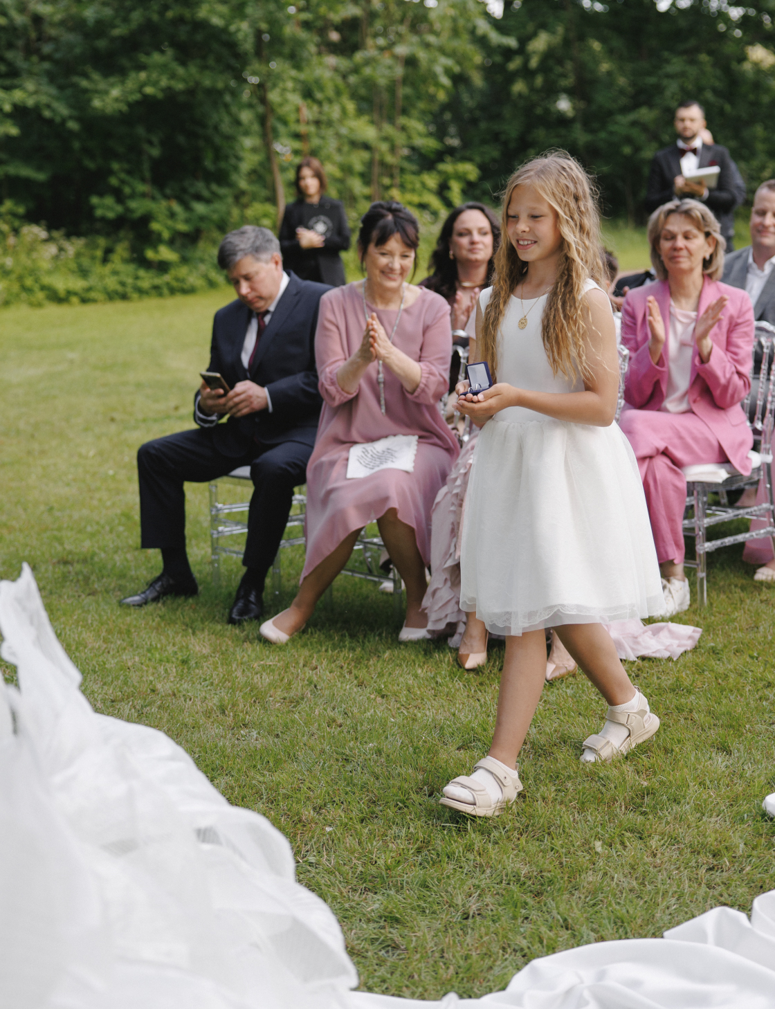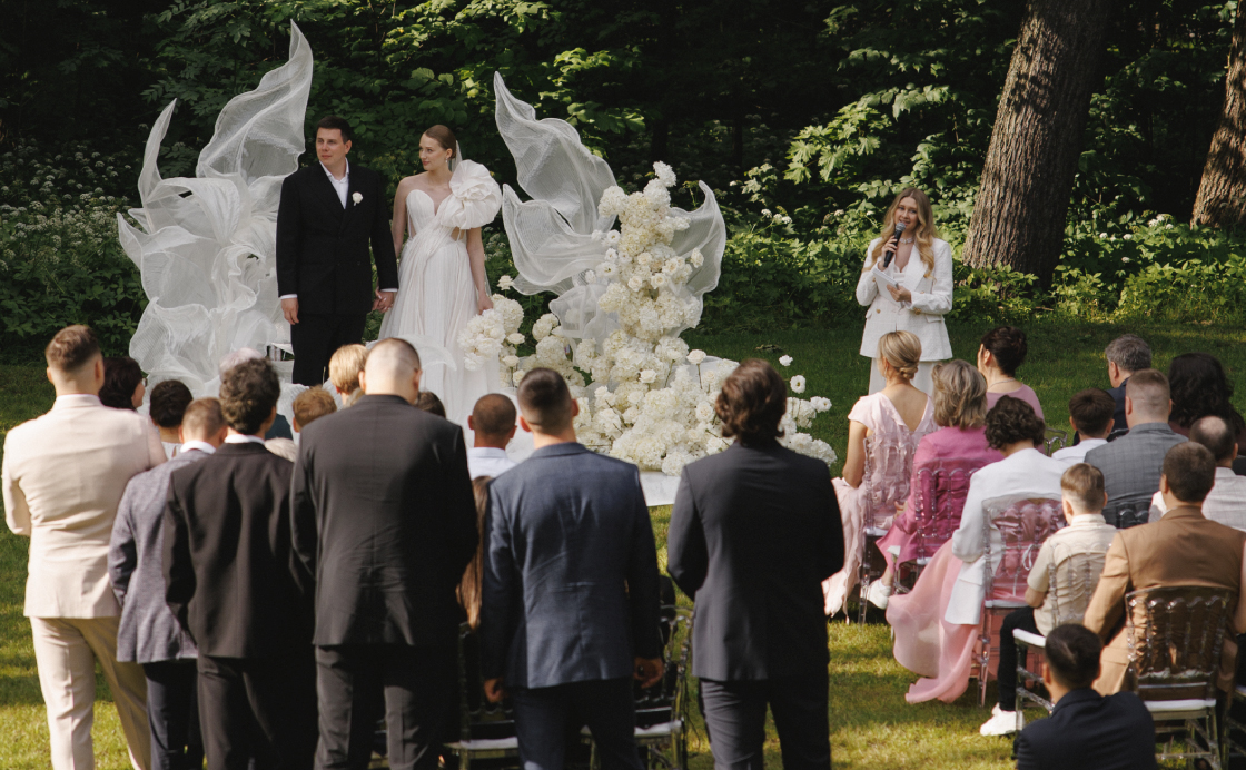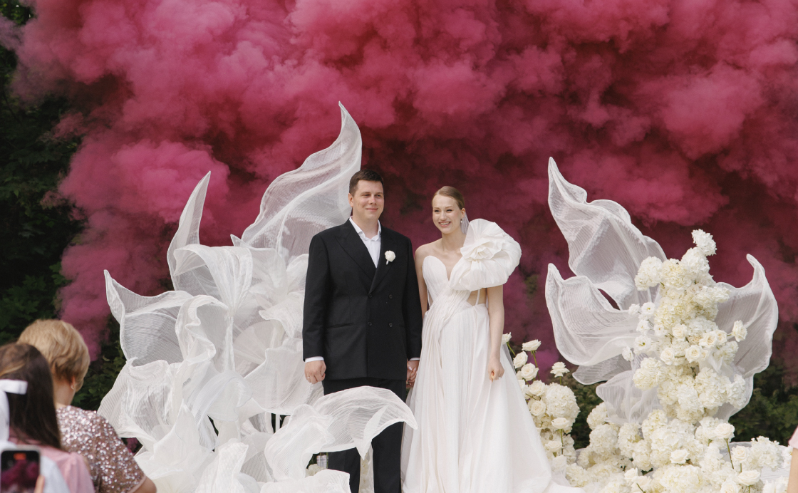 Под звуки струнного квартета гости расселись на свои места, и началась церемония. Ирина появилась под руку с дядей, который подвёл её к Алексею. Когда прозвучали клятвы, ребята поделились особенной новостью: вскоре они станут родителями. Под аплодисменты гостей в небо поднялся розовые клубы дыма, и все поняли — у пары будет дочка.