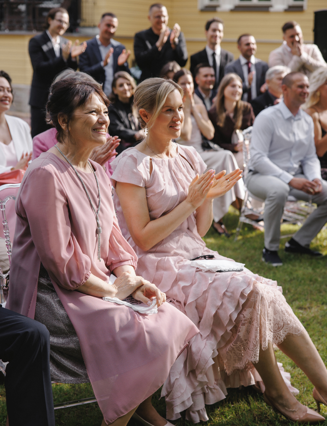 Перед церемонией гостей ждал приветственный коктейль в саду виллы. Официанты предлагали шампанское и лёгкие закуски, а струнный квартет играл прекрасную музыку. Атмосфера была непринуждённой — гости общались, наслаждались летним днём и ждали начало торжества.